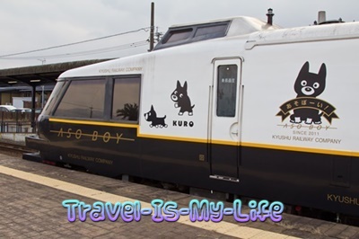 ความพิเศษของรถไฟด่วน Aso Boy นี้ก็คือ การออกแบบและตกแต่งทุกอย่าง จะมีเจ้าคุโระ น้องหมาตัวดำ หน้าตาบ้องแบ๊ว มาเป็นมาสคอตรับเชิญประจำขบวน พร้อมด้วยโฮสเตสสาวสวย ที่จะมาต้อนรับกันตั้งแต่ก่อน Aso Boy จะมาจอดเอี๊ยดเทียบชานชลาเสียอีก … ไม่แปลกใจเลยที่ Aso Boy จะมีผู้โดยสารตัวน้อยเยอะเป็นพิเศษ