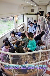 ก้าวขึ้นบนขบวนรถ โอ้โห การตกแต่งภายในและสิ่งอำนวยความสะดวกต่างๆ ทำเอาทั้งเด็กและผู้ใหญ่ลั้นลาจนหน้าบาน ทั้งหน้าต่าง บานประตู เก้าอี้โดยสาร ห้องเสบียง จี๊ดจ๊าดมากมาย และยังมีห้องเด็กเล่นเอาใจคุณหนูอีกด้วย (ผู้ใหญ่เห็นก็อยากเล่นนะ) ในระหว่างเดินทางมีบริการเสียงตามสายบรรยายให้ความรู้ (เป็นภาษาญี่ปุ่น) โดยเฉพาะเมื่อ Aso Boy เฉียดเข้าใกล้สถานที่น่าสนใจต่างๆ เช่น น้ำตก กังหันผลิตไฟฟ้า หรือจุดสลับรางอันเก๋ไก๋ที่สถานีทาเทโนะ เป็นต้น รวมทั้งพระเอกตามท้องเรื่องอย่างภูเขาไฟอาโซะนั่นเอง